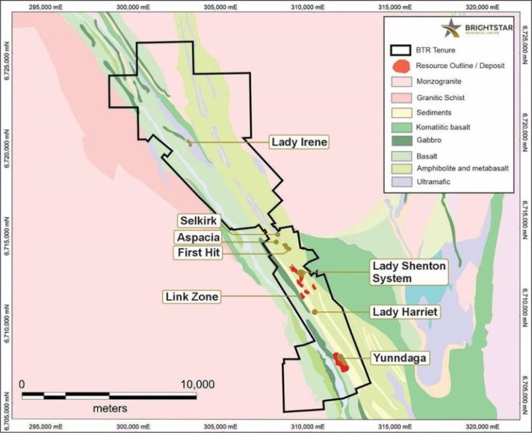 - Brightstar’s mineral assets are situated across roughly 300 square kilometers of 100-percent-owned land in the Laverton Tectonic Zone and ~80 square kilometers in the high-grade Menzies Shear Zone.