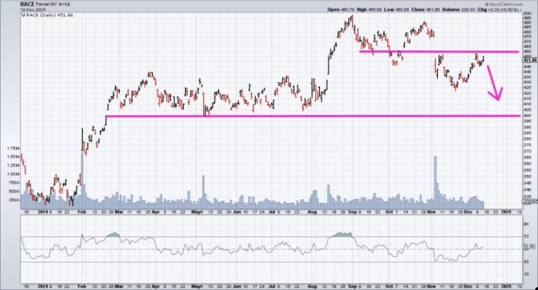 Despite its position as a luxury automaker synonymous with prestige and performance, Ferrari N.V. (RACE) may be showing signs of a near-term downturn. Recent price action, coupled with stretched valuations and slowing shipment trends, suggests that RACE may face potential downside. By incorporating both technical and fundamental analysis, we can see a…