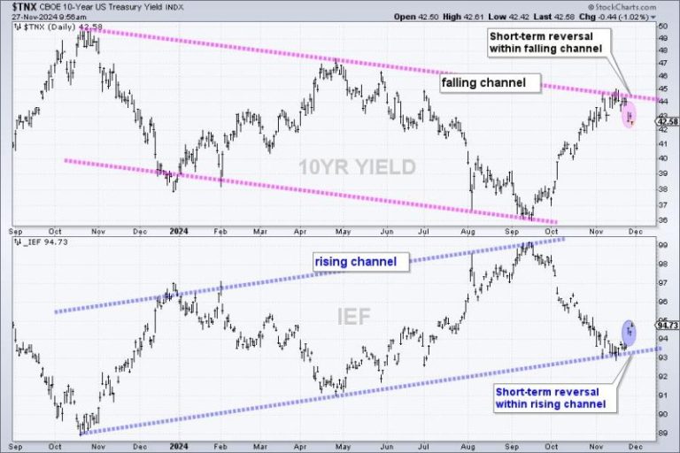 The 10-yr Treasury Yield reversed its upswing with a sharp decline and the Home Construction ETF (ITB) reacted with a noteworthy gap-surge. Today’s report analyzes the yield, the TBond ETF (IEF) and ITB. The 10-yr Treasury Yield plunged as Treasury bonds surged on the heels of a new nomination for…